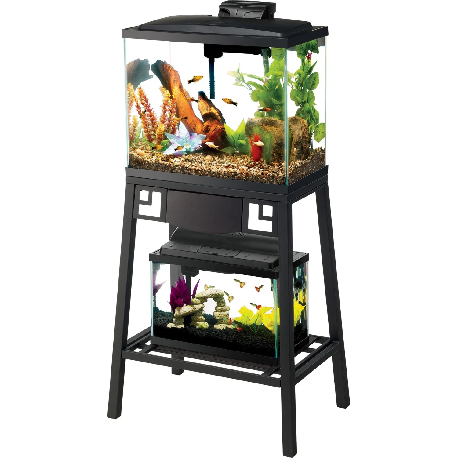 - Features a secondary shelf that can accommodate another aquarium.