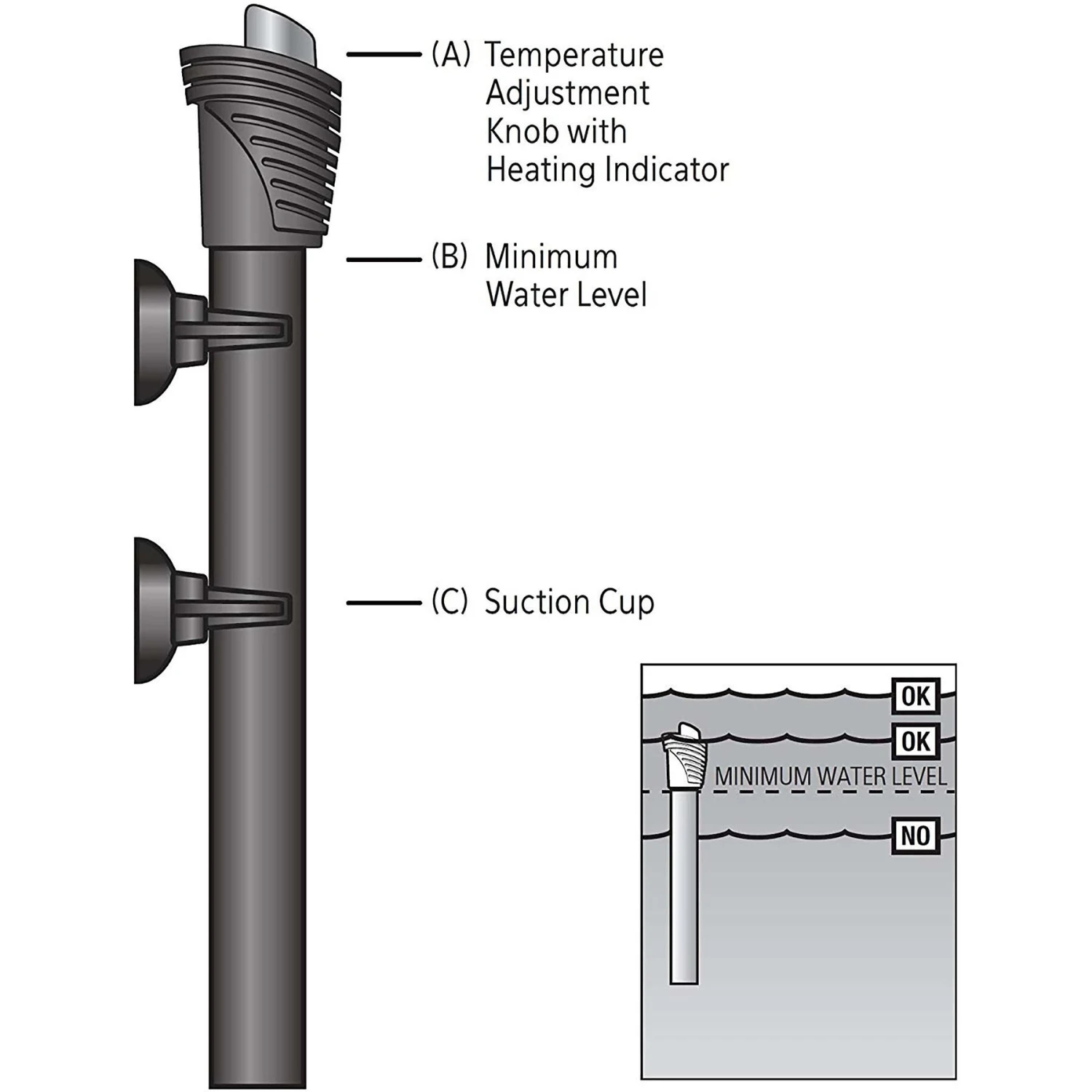 - Durable shatter-resistant heater construction allows for completely submersible and safe aquarium temperature control.