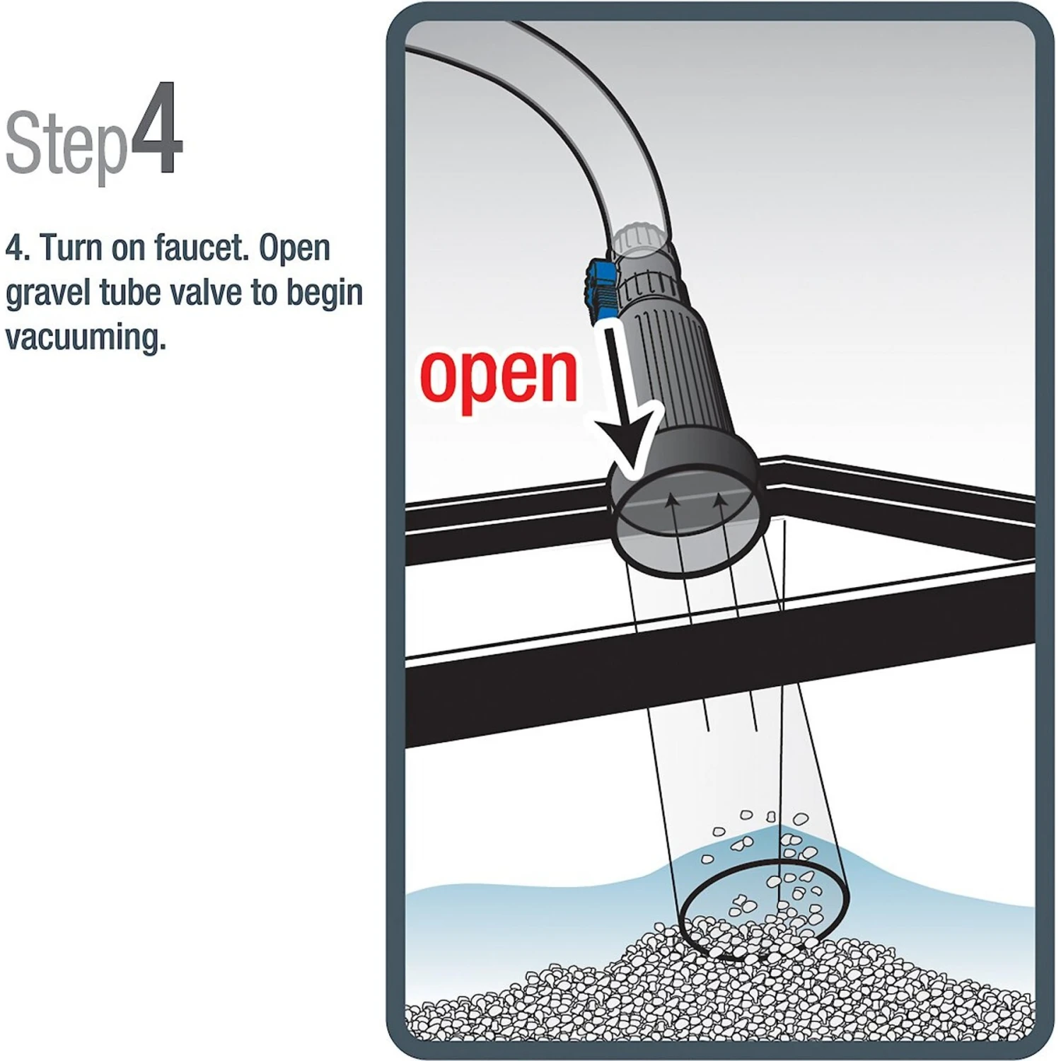 - Vacuums the debris out of your tank’s gravel and sends it right down the drain.