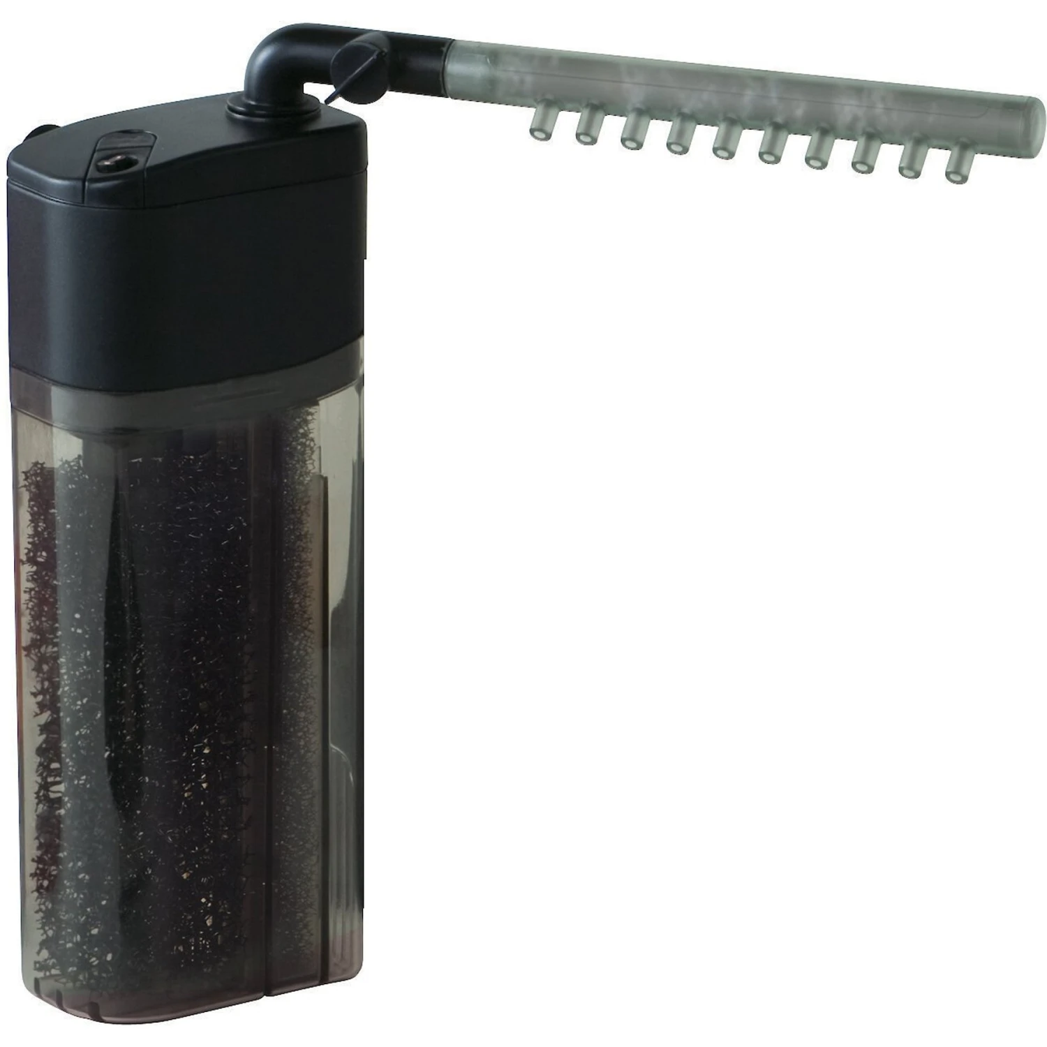 - Adjustable flow output with attachable spray bar distributes a gentle, even flow of water, making it safe for delicate fish or shrimp.