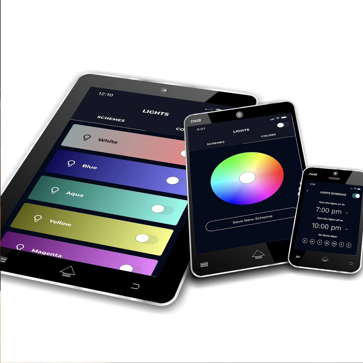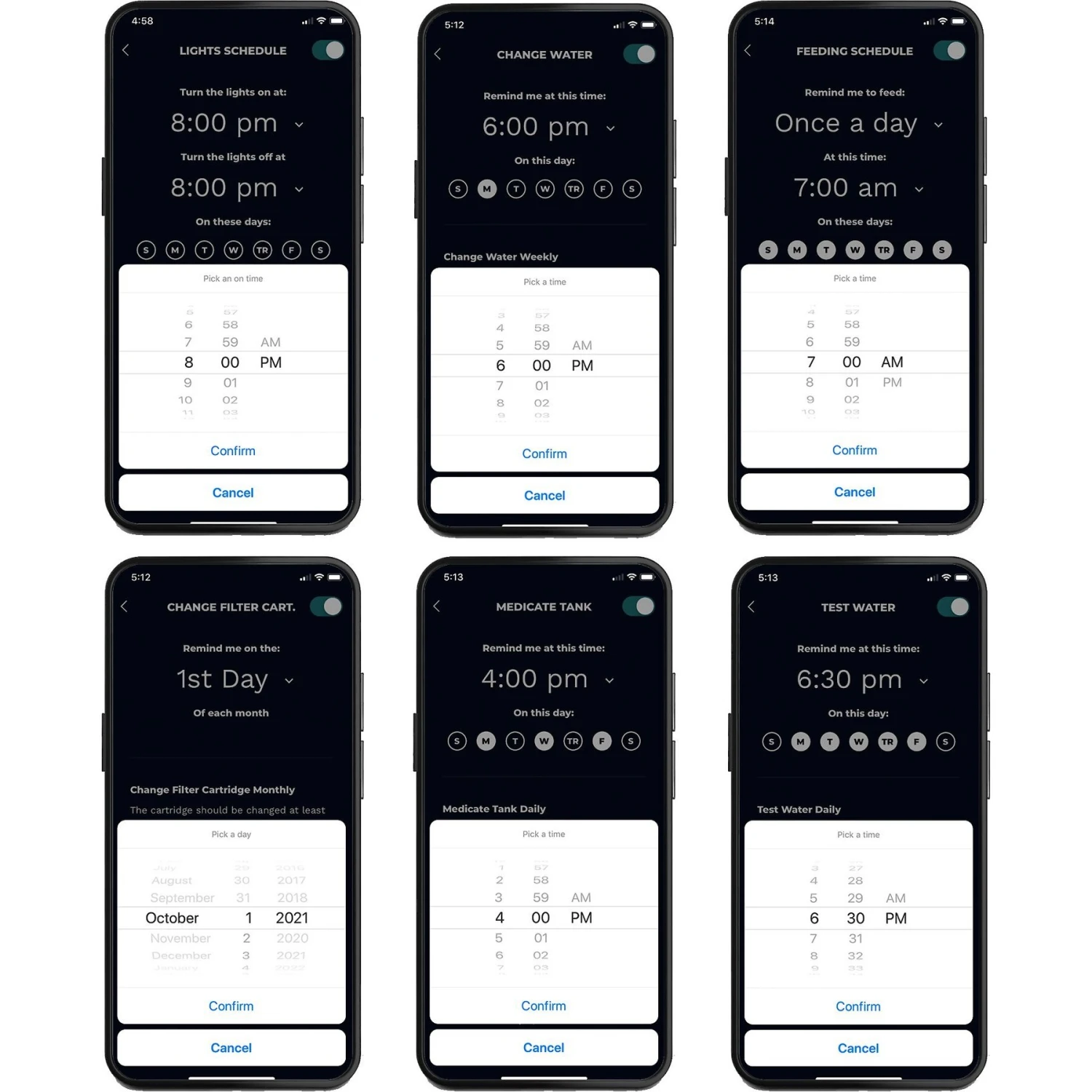 - The Smart Tank app allows you to set the aquarium light to turn on in the morning—in a variety of colors—and shut off at night.
