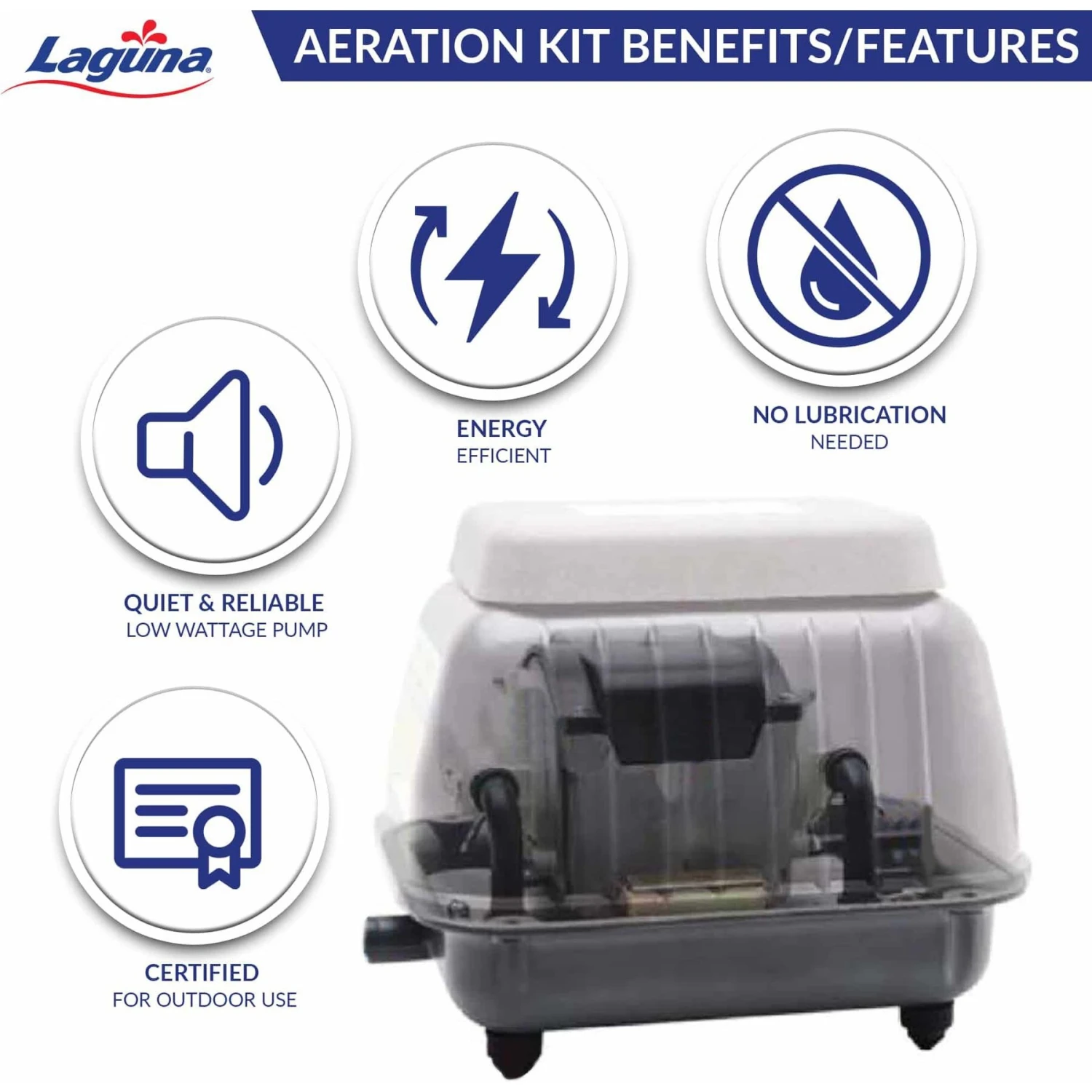 - Pump provides fresh oxygen to your pond year-round to support the health of your fish.