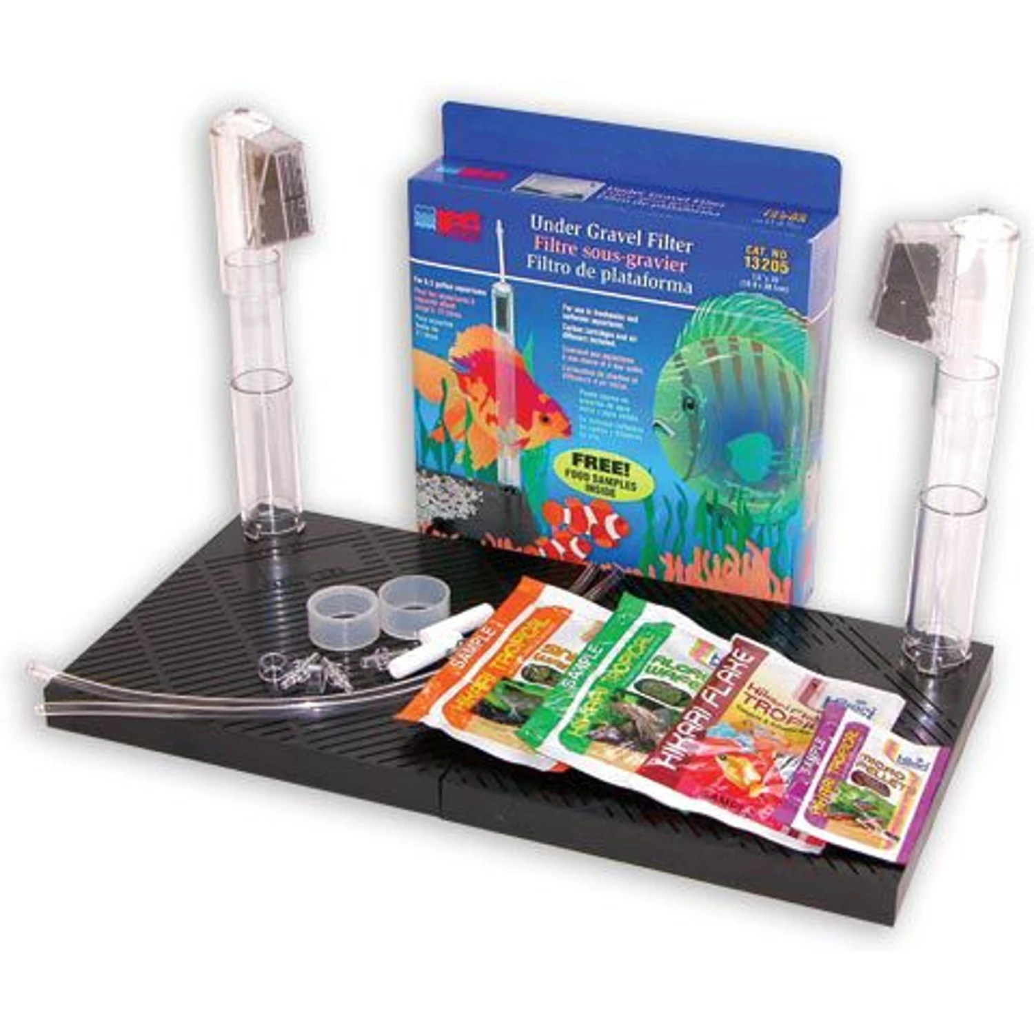 - Includes 2 carbon cartridges, Discard-a-Stone, a fish-saver elbow, and a telescoping ring to adjust the height of the uplift tube.