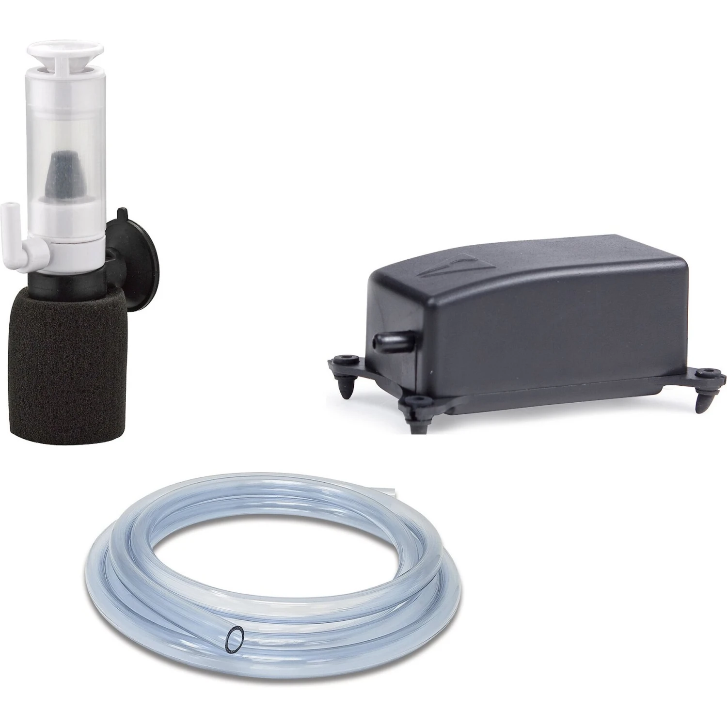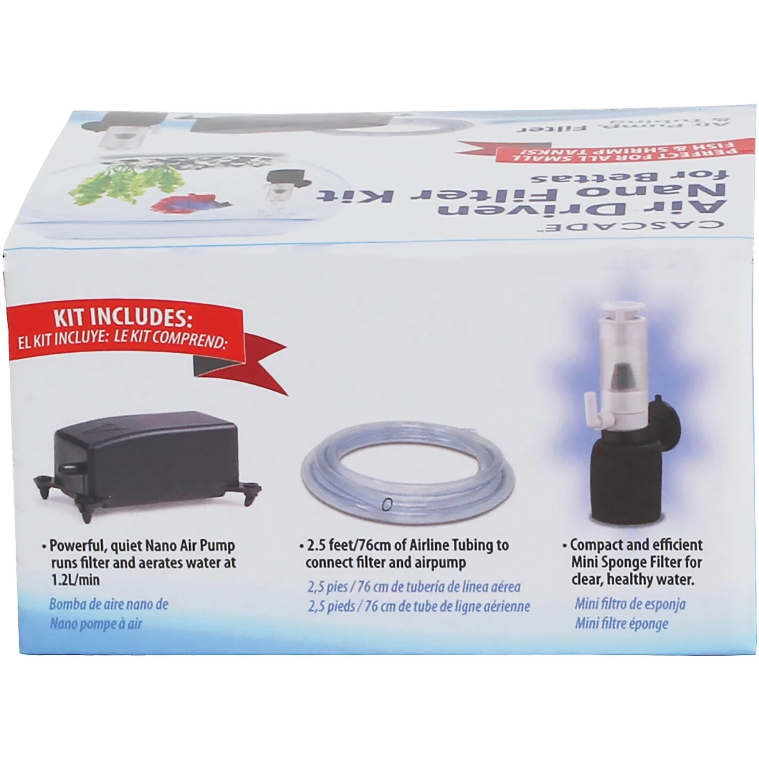- The Cascade Nano Air Pump pumps oxygen into your fish tank at a rate of 1.2 liters per minute and easily connects to an electrical outlet through a power cable.