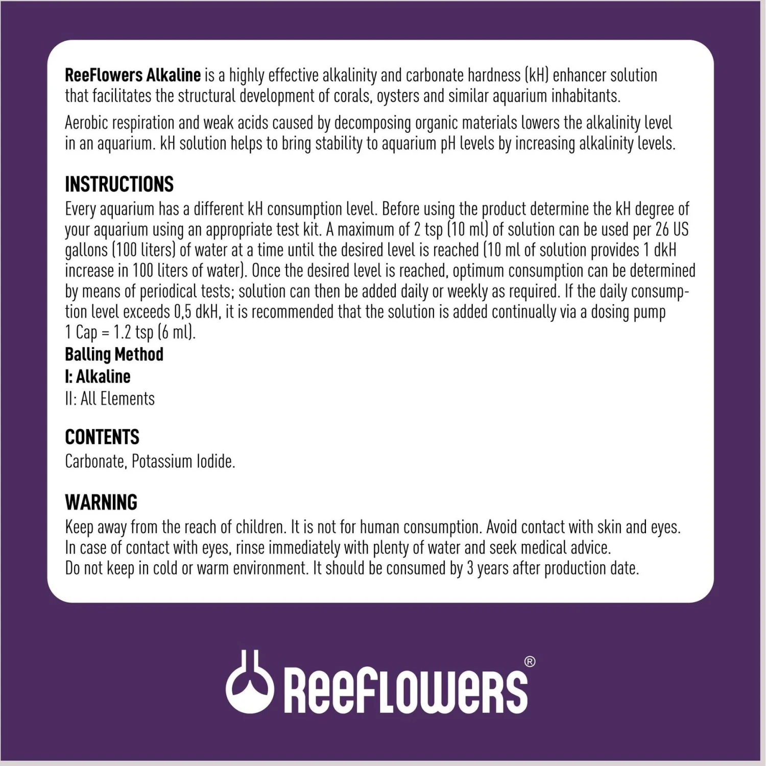 - Reeflowers Alkaline is part one of two in the ReeFlowers Easy Balling set—try them all (sold separately) to create the ultimate nano reef tank!
