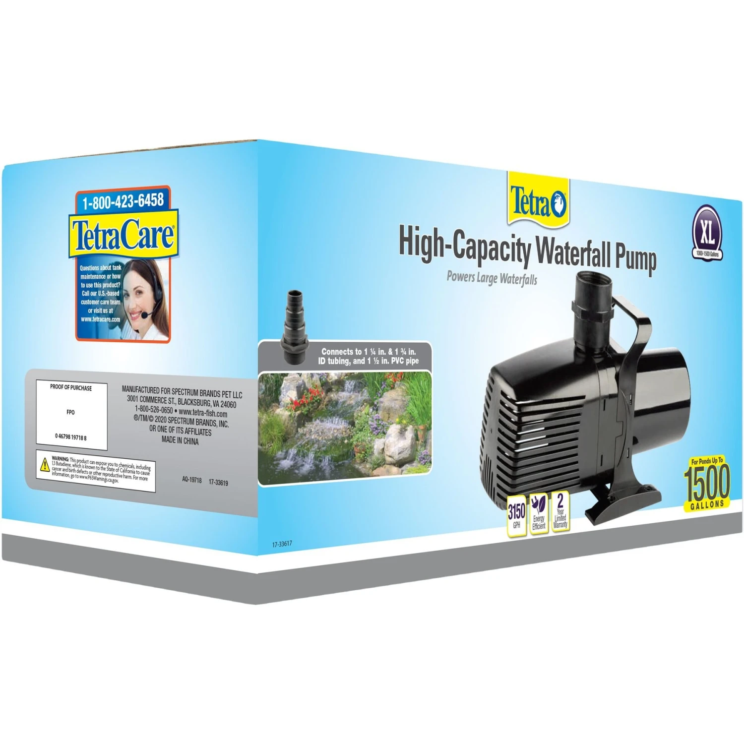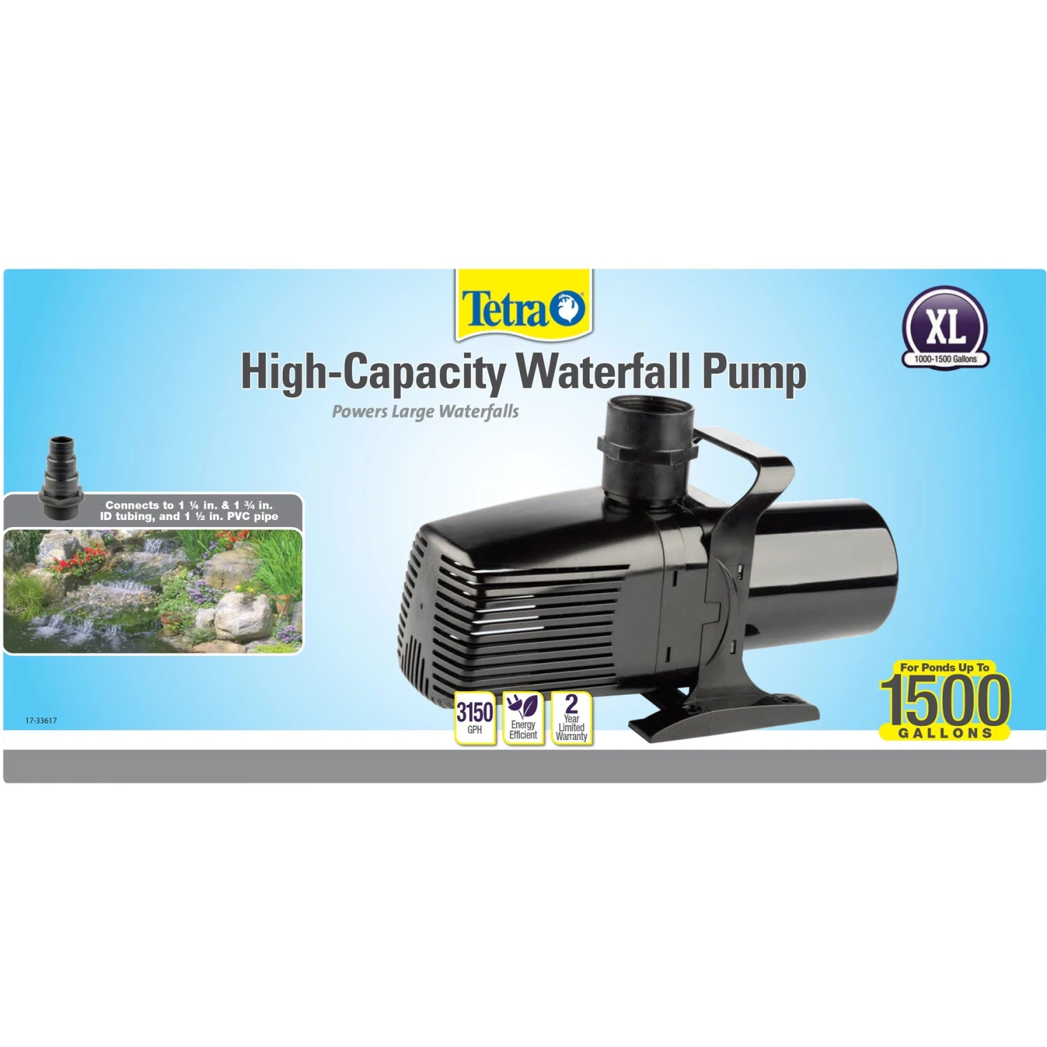 - This powerful pump is capable of powering waterfalls in large ponds between 1,000–1,500 gallons.